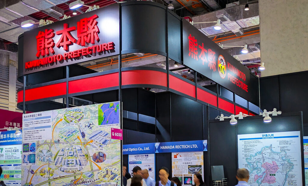 『SEMICON Taiwan 2025』 には日本の地方自治体が出展していました。TSMCやRapidus、ソニーなど半導体企業が進出している自治体を中心に、北海道、宮城県、山口県、福岡県、佐賀県、宮崎県、京都府の8県がブースを設置しており、パネルなどで魅力をPRしていました。